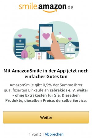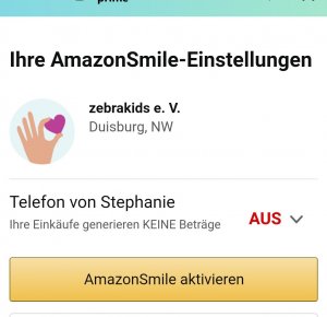 Um die Hinterlegung in der App einzurichten, drücke den Button "Amazon Smile aktivieren"