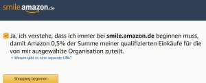 - Schritt: Hinterlegung auf der Website von www.smile.amazon.de
