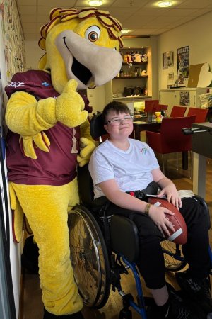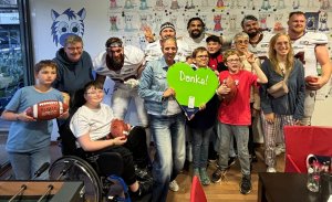 Das spannende Spiel zog alle in seinen Bann und so wurde jeder Yard-Gewinn frenetisch gefeiert. Große Augen gab es dann noch einmal als die Maskottchen Burnie und Bam die Kinder besuchten. Natürlich gab es für alle Kinder als Erinnerung an diesen besonderen Tag einen eigenen Football, mit dem es nach dem Spiel auch direkt runter zur Bande ging, um Autogramme der Spieler zu ergattern. Die Kinder staunten nicht schlecht, als plötzlich Patrick Poetsch, Marvin Pludra, Jason Chikere, Kaan Timpel und Peter Ganz die Kids in der Loge erwarteten und ihnen alle Fragen rund um Rhein Fire Football beantworteten.
