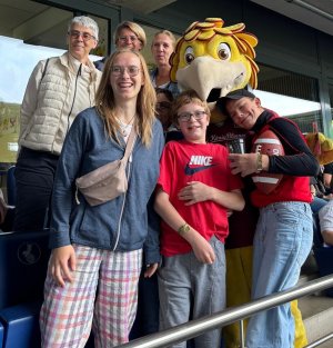 Man könnte denken, was für ein perfekter Tag, aber Patrick Poetsch und unser Vorstand erfüllten den 3 Geschwistern noch einen Herzenswunsch: Es ging einmal runter auf den "heiligen Rasen" ein paar Bälle mit dem besten Fullback Europas werfen. Was ein krönender Abschluss für diesen unvergesslichen Tag!!!
