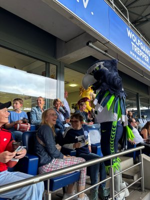Wir sind Euch noch unseren kurzen Bericht über den Besuch unseres Ehrengastes und seiner Familie beim Rhein Fire -Spiel gegen die Hamburg Seadevils schuldig.