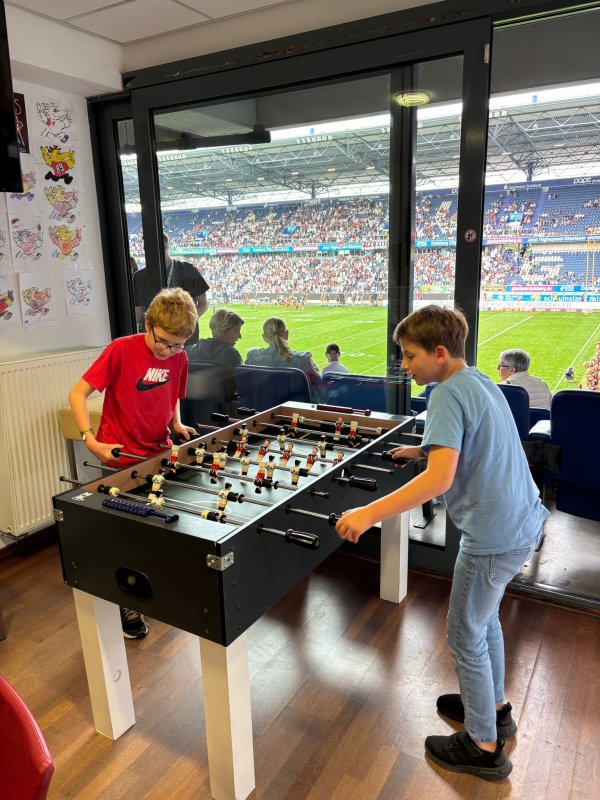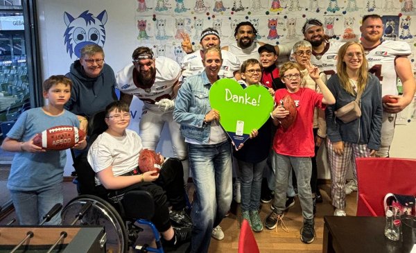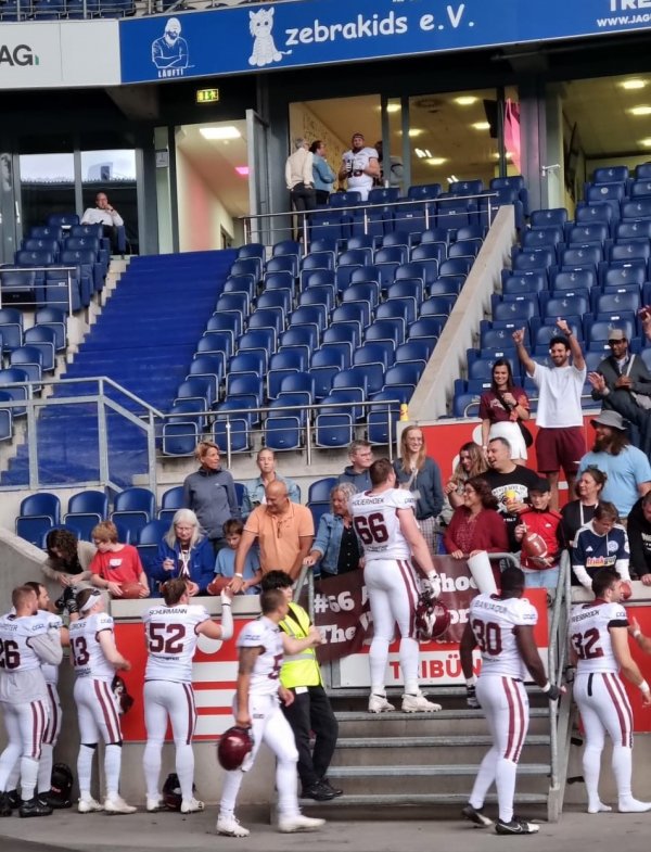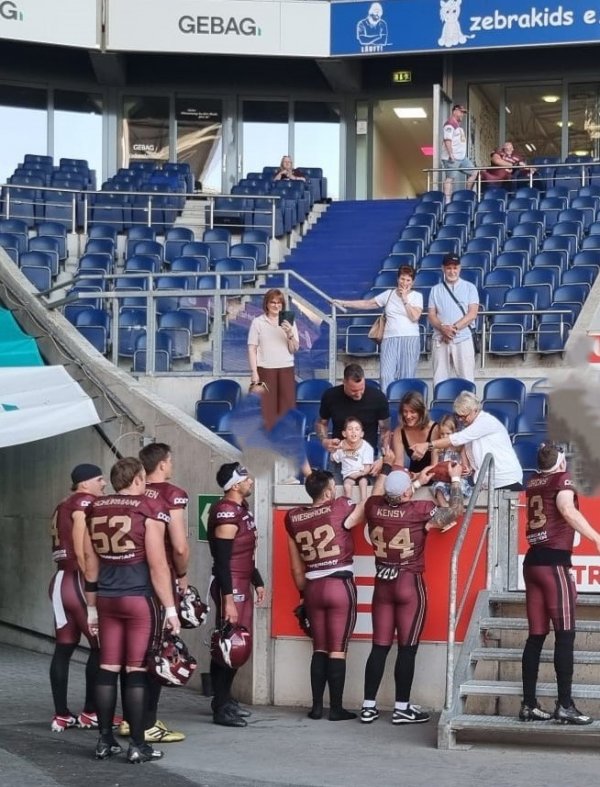 Zum Schluss gab es für beide Jungs noch einen eigenen Football, die beide beim Abklatschen am Spielfeld vom Großteil der Spieler signiert wurden. Das größte Highlight war dann aber der Besuch von Patrick Poetsch und Marvin Pludra in unserer Hospizloge, wo unzählige Fotos gemacht wurden, natürlich Autogramme gegeben wurden und alle Fragen ausführlich beantwortet wurden.