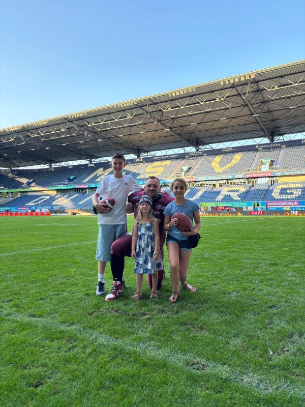 Man könnte denken, was für ein perfekter Tag, aber Patrick Poetsch und unser Vorstand erfüllten den 3 Geschwistern noch einen Herzenswunsch: Es ging einmal runter auf den "heiligen Rasen" ein paar Bälle mit dem besten Fullback Europas werfen. Was ein krönender Abschluss für diesen unvergesslichen Tag!!!