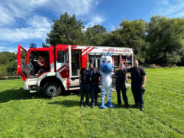 Auch unser Hugo war on Fire. Er ließ es sich nicht nehmen das Feuerwehrfahrzeug der Freiwillige Feuerwehr Duisburg - Löschzug 130 genaustens zu inspizieren.
